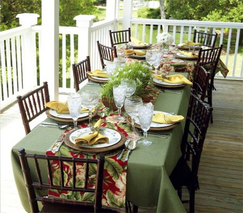 The hosts like to start with something cool on the front porch, which overlooks the neighborhood lagoon. Allyson has set up a tropically themed, self-serve bar. While the adults sip Arnold Palmers spiked with Firefly Sweet Tea Vodka, the children gulp down homemade orangeade, a favorite beverage from Bob’s own childhood. His mom made orange juice every morning—in those days from concentrate—then added water, lemon juice, sugar, and Maraschino cherry juice to whatever was left for an afternoon treat. Bob has modernized this version with Splenda and freshly squeezed OJ.