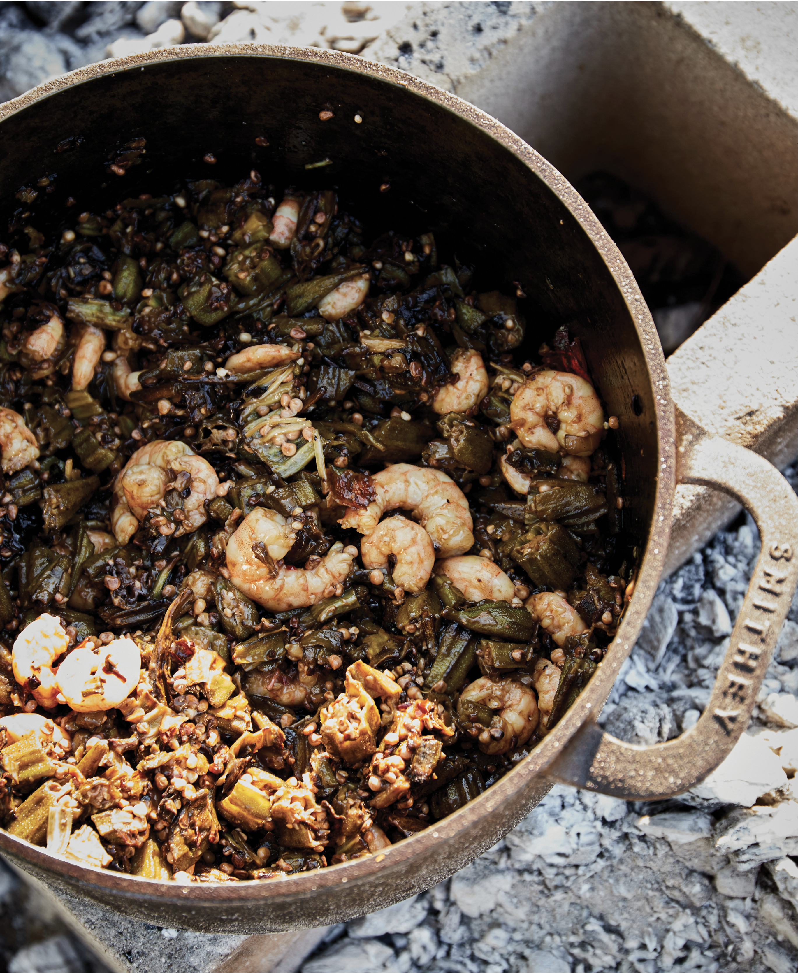 And like the proverb, the teacher appears when the student is ready, Dennis met University of South Carolina professor and culinary historian Dr. David Shields through social media around 2014. “He’d respond to my recipes and curiosities with research. What he studies, I practice,” he says. “This is a communal journey. It includes the ancestors, the elders in Charleston, and as far as West Africa, everyone I’ve ever been on the line with, those I’ve fed, those who’ve fed me, my wife, and my son. Most of what I do isn’t for me. It’s for my people.”