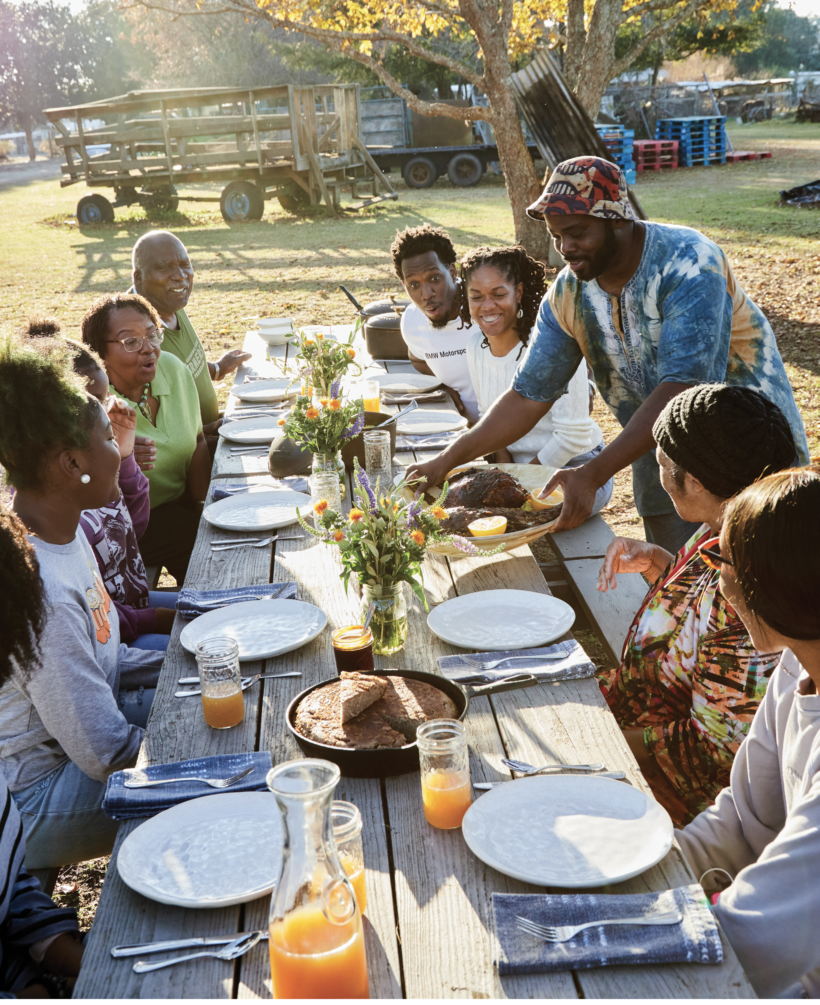 Dennis honors his own biological ancestors, as well as the entire diaspora, especially those in the Gullah community. Take Joseph Fields of John’s Island, for instance. “I met him years ago, when I first got back to Charleston from the Virgin Islands. He was one of the farmers who’d bring produce to the restaurants. I was on a mission to find out who was doing what in the culture, so I introduced myself to him,” he says. Dennis went from being a customer to a partner, hosting many of his pop-ups and barbecue events on the Fields’ 50-acre, certified organic fruit and vegetable farm. “It’s an open space, so it’s perfect for outdoor cooking. And it’s just powerful to do something on a Gullah-owned, ancestral space like that. It’s like family,” he added.
