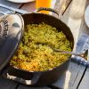 Working with limited resources was a sankofa moment—an African term for a return to the past—for Dennis. His ancestors, too, had small cooking spaces and an armful of herbs and vegetables to bring life to the same dishes that we still nyam (eat) today. The experience inspired him to host Gullah-Geechee pop-ups, serving dishes like conch stew and eggplant casserole with shrimp using fresh local produce and seafood, and occasionally cooking over live fire. “I cook over coals occasionally to show the old ways of wood-fire cooking,” he says. “It’s different then cooking over gas, and it takes a lot more skill and finesse.”