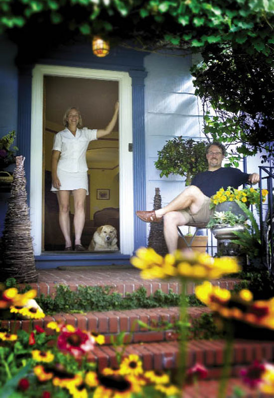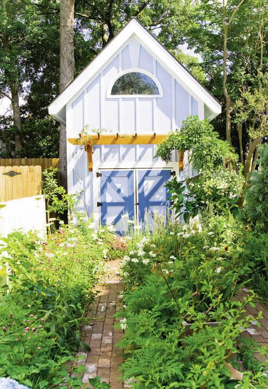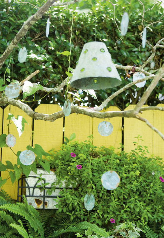 “I used to have an old pick-up truck that I’d move to a different spot every morning,” says Joan McDonald of a routine she took up at her former downtown residence. “Gardening space was limited, so I arranged a makeshift nursery in the bed of the truck and would relocate it according to where the sun was.” Today, McDonald’s horticultural efforts have landed on considerably firmer ground; specifically, the yard around the World War II-era Wagener Terrace bungalow she shares with her husband, Chad. A refreshing mix of beauty and utility, the garden features cut flowers just steps away from a patch of veggies filled with kale, cabbage, and herbs. Above the front door, ivy weaves a tangled web of vines, while outdoor living spaces in the back extend almost seamlessly from the house. “This garden is all about functional beauty,” Joan explains, with an emphasis on “function.” With a background in fine arts, she established herself early on as a serial entrepreneur with restless energy for new projects. In the span of a decade, Joan launched a high-end pet boutique, served as a consultant for Bath & Body Works, and dabbled in product design. So it was no surprise when, after discovering the smallish fixer-upper above Hampton Park in the late 1990s, she quickly hatched an ambitious plan to transform the house. Through a reference from a friend, she called on a local architect to consult with her on design. Chad arrived, and both were quickly smitten. The two married 10 months later and settled into the house they worked together to renovate. Following this, Joan embarked on what she describes laughingly as “an experimental phase in landscape design.” She explains, “For every plant in my garden today, there were at least five that came before that gave their lives to help me learn.” This phase was capped by a misguided attempt to encourage additional plant growth by painting giant red polka dots on the back fence. The theory, such as it was, held that bright colors would help ignite the blooming process in nearby tomato plants. Chad was less than impressed. “I came home and there they were,” he says. “She didn’t even warn me.” Hence, a new rule was instated: Joan could continue to do (or paint) whatever she wanted in the backyard, but the front belonged to Chad. In 2003, five years after buying the Wagener Terrace house, Joan traded in her backyard experiments for more formal horticultural training, joining the volunteer program at the City of Charleston Greenhouse. There, she worked with buds, bulbs, and flowers, learning to grow anything and everything that came through the small greenhouse. A permanent staff member now, Joan, with fellow green thumb Chad, has since brought a charming permanence to her own landscape. “It’s always evolving, but we try to be very efficient in our garden, in terms of available space and practical value of what we’re growing,” says Chad. “It doesn’t come in the yard if it doesn’t serve a purpose.” “Plus, we wanted to play to the property’s strengths, rather than discard and reinvent everything,” Joan explains. To that end, existing hard surfaces are interspersed with grasses and ferns, creating a layered effect that cascades color. In the back, found objects like old floor lamps or discarded tiles become easy design elements, along with the latter half of an old sign from the nearly forgotten fast food chain Hot ’n Now, currently hanging along the back fence and planted with creeping fig. “Form follows function around here,” Chad offers. “It was important to us that we create a garden we can use year-round, and that’s how it’s turned out. We entertain here and just spend time together.”