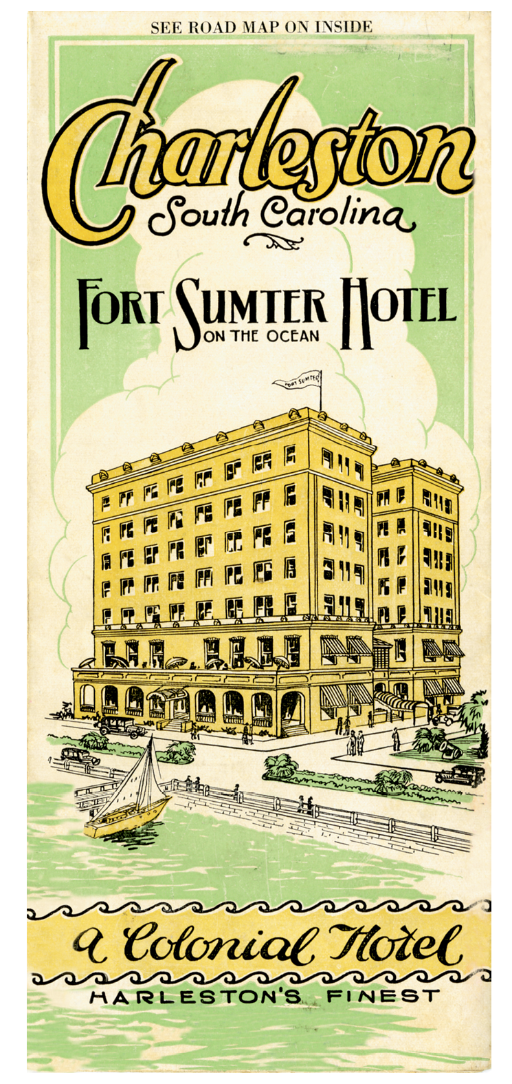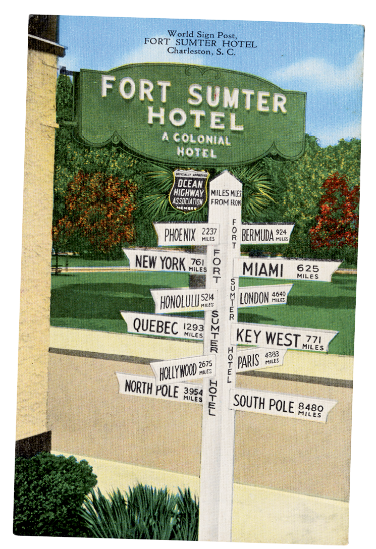 Opened in 1922 and correctly touted as “Charleston’s only waterfront hotel,” the Fort Sumter Hotel at the foot of King Street was magnificent in its heyday, with white marble floors, white-gloved bellhops, and a grand lobby dominated by a gargantuan mural of the bombardment of Fort Sumter. Many notables stayed at the hotel, perhaps the most notorious being John F. Kennedy who, during his pre-World War II Navy days, purportedly had an affair (gasp!) while lodging there.