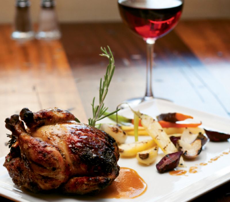 “When I was growing up, my mom made Cornish game hens,” says Jacobson, who notes that this recipe is perfect for a dinner party because each person gets their own bird. To add flavor to your own feast, first prep the hen in a brining solution. “The salt opens the pores, maintains moisture, and pulls out impurities,” he explains. For an herbal aroma, Jacobson suggests filling the bird’s cavity with garlic, sage, rosemary, and thyme. Then truss the legs and wings using butcher’s twine (find photo instructions at charlestonmag.com). “This gives a nice aesthetic and allows for even cooking,” he says. Turn on the outside burners of the gas grill and for charcoal, push the coals away from the center. “Put the game hen in the middle of the grill to cook it like you would in a convection oven,” he adds. For an extra-tasty crust, baste two or three times with Jacobson’s herb butter, then serve with veggies and his balsamic gastrique. Ta da—game hen alfresco.