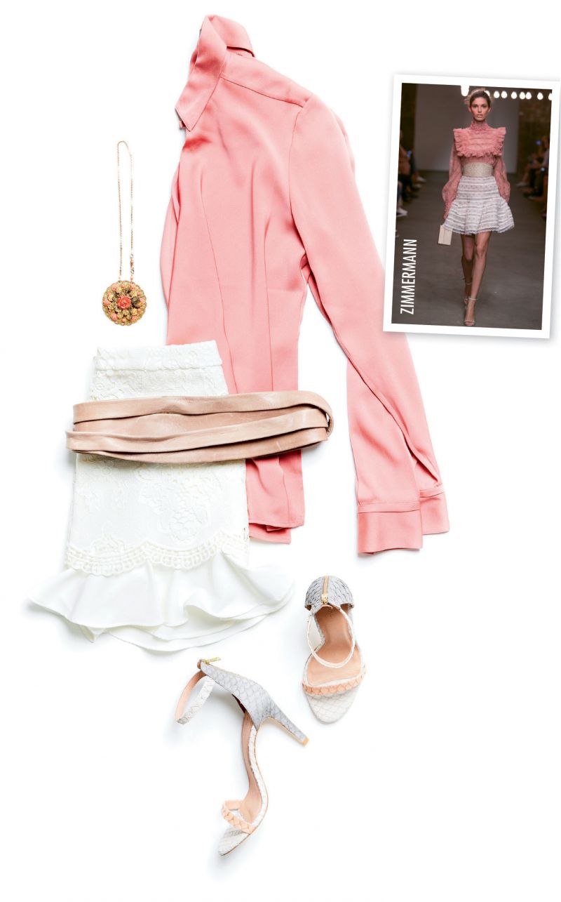 Halston Heritage silk front-drape blouse in ”tea rose”