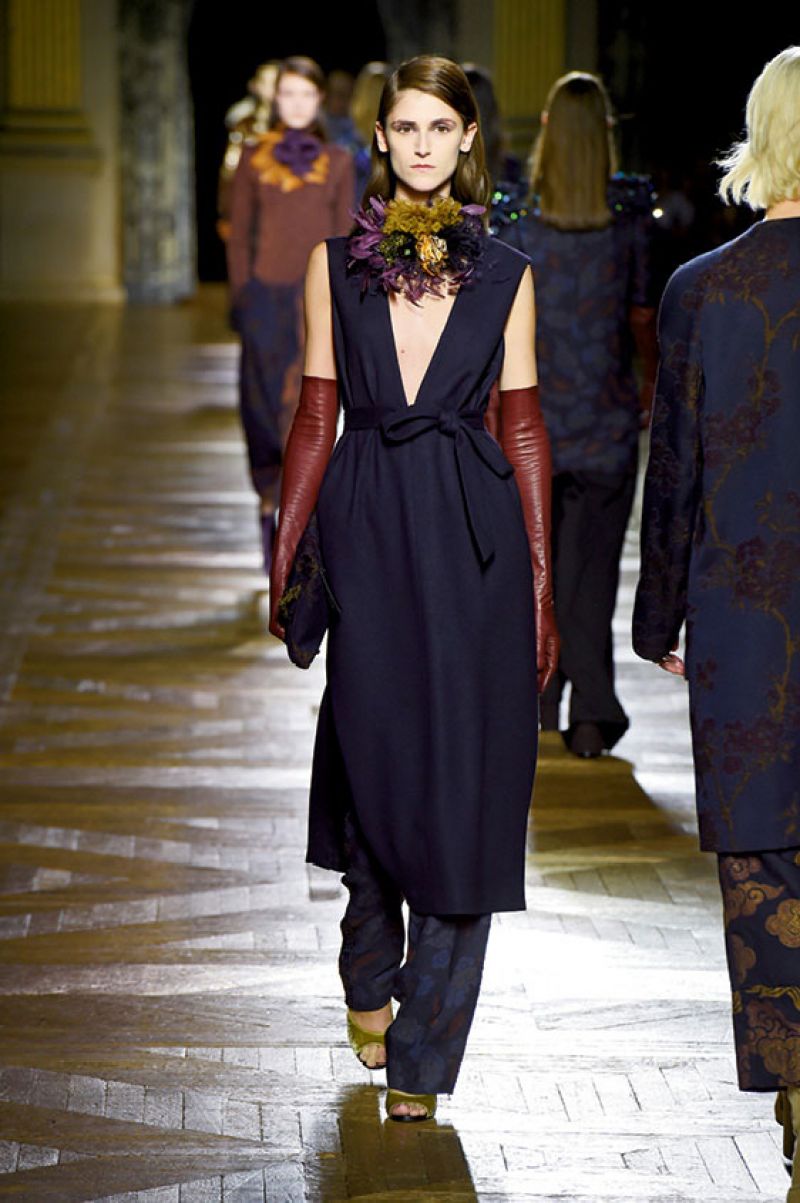”I love this trend, and Dries Van Noten does it best! Full-length gloves are ideally paired with a sleeveless or cap-sleeve dress or top. Go with leather—do not try this look in a knit or satin fabric.”