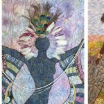 Green Thumb: I’m crazy about anything botanical. Vines, ferns, tendrils, seed pods—I just love botanical imagery. My favorite method of inspiration is to work in a completely different medium, so a side art I do is gelatin printmaking with pressed leaves and plants. Sometimes I take those pressed leaves and turn them into a silk screen to use with my other pieces.