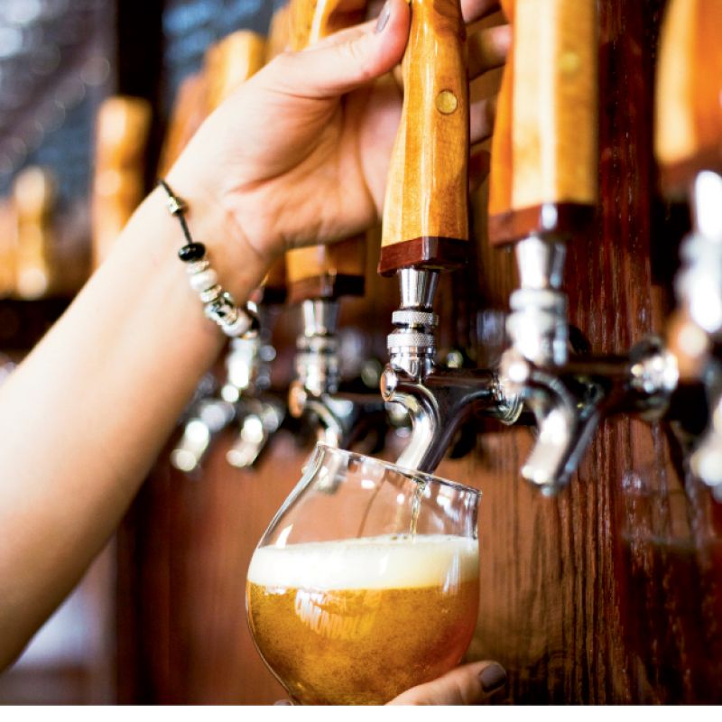 The robust suds selection helped perk up profits and draw customers, and soon, six beers on tap weren’t enough. Demand led Richard to design a patented growler-fill system called the “Frankenstein,” which allows him to keep a whopping 160 beers on tap at once.