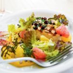 My daughter requested the rabbit crepe, which she recognized as a “fried burrito.” She found the crepe overfilled, heavy, and overwhelmed, much like the rubbery stuffed squid that also inspired her to wrinkle her nose. But she and I both believed the heirloom tomato salad was resplendent, even in winter. Ripe hothouse fruits blend well into a canvas of freshly pulled mozzarella, mint pesto, and preserved lemons.