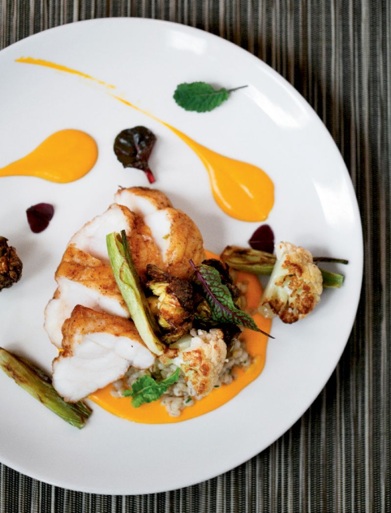 Order the beet salad, and chef Jon Cropf presents his own edible painting. Slices of cured duck nestle among a multicolored fantasia of roasted orbs. There is smoked goat cheese dolloped amid a scattering of anise-tinged “soil,” small dustings of molecular revisionism that strike the ideal balance between heritage and innovation. Such creativity seems worthy of the McCrady’s kitchen, as does the venison, which is composed of large rounds of crimson tenderloin, left rare and anchored with a rich, custardy bread pudding. In the warmer months, the handsome dish is topped with an ethereal display of vibrant flower blossoms plucked from the sous chef’s garden.