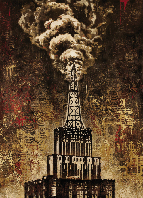 Fairey’s work is renowned for addressing social and political issues, for questioning authority and ruffling feathers of the status quo—a bent for which growing up South of Broad gives good fodder. “My work is about the seduction of an aspect of a compelling image that at first might seem escapist, but then upon closer inspection there’s a very, very serious engagement and conceptual provocation,” he says. “All my favorite artists, from The Clash to Bob Dylan to Rauschenberg and even to a degree Jasper Johns, have that mix of seduction and agitation to what they do.”