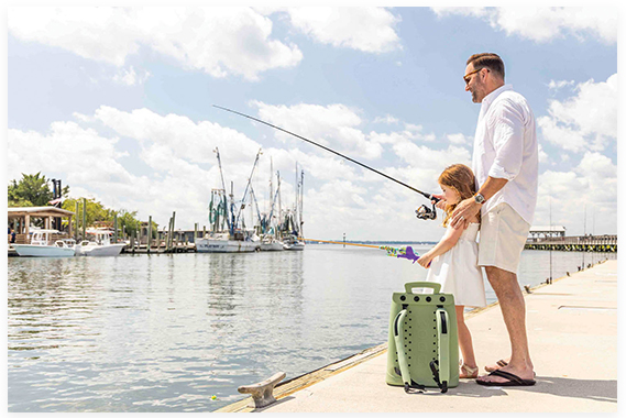 The bag’s one-piece construction, secured by a lockable lid, features a proprietary handle that props the top open, making it easy to load. Mildew-resistant straps and a flat base ensure the bag stands upright. “It’s evolved into an everything bag. People are using it for hiking, hunting, gardening, the dog park—you name it,” says Jewett.