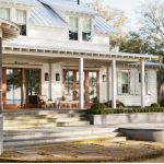 The new space feels clean and contemporary, but details from the past maintain a connection with the original architecture. For example, flanking the addition are wing walls, which hide the steel brought in to support the new structure and accommodate its open floor plan. These walls are covered with beadboard salvaged during the renovation, and the wood still reflects the colors the house has been painted over time—a rainbow of avocados, creams, and pinks. Their rustic patina adds vintage warmth to new construction. “That’s the history of the house, and it just feels appropriate there,” Lauren notes.