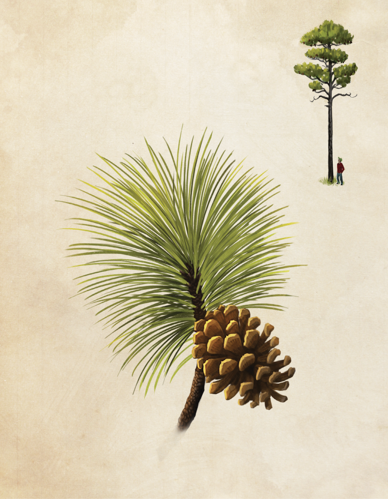 Longleaf pines were called “mast pines” in Colonial times because their strength, straightness, and height made them ideal as masts for sailing ships. When the British Royal Navy found a particularly desirable pine, they carved a broad arrow into the trunk to mark it as one claimed by the Crown—a “King’s tree.” According to lore, this is how Kingstree, South Carolina, got its name.