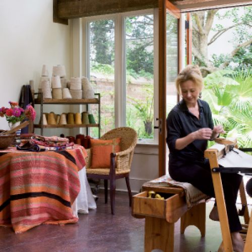 Tour the interiors layered with moody hues, collected objets, and English influences