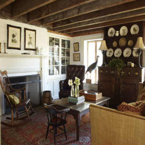 Tour the interiors layered with moody hues, collected objets, and English influences