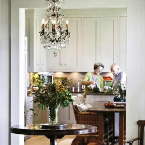 Tour the interiors layered with moody hues, collected objets, and English influences