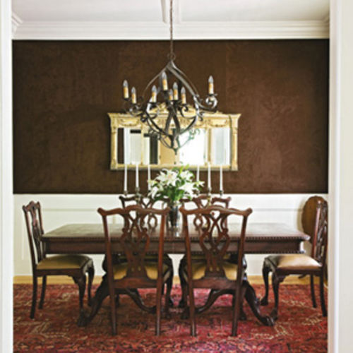 Tour the interiors layered with moody hues, collected objets, and English influences