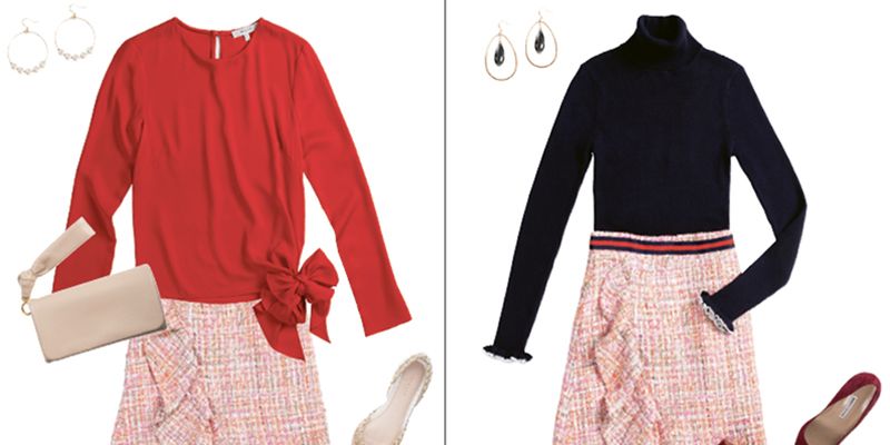 We’re all in for the resurgence of tweed, especially when it’s prim but pretty in pink—with a rebellious band of red...