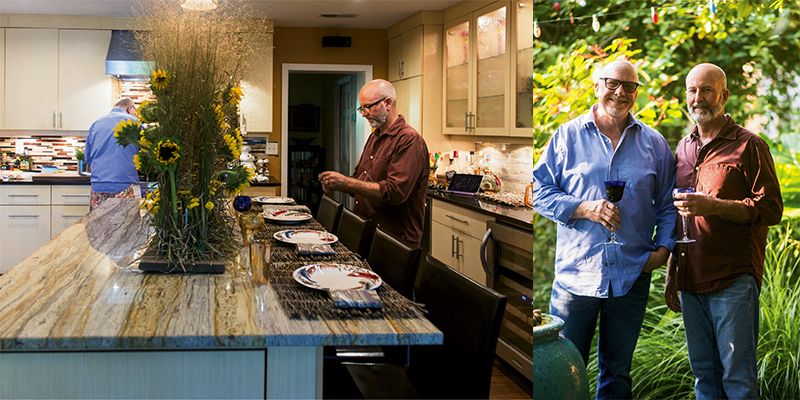 Chef-instructor David Vagasky and his husband, Compost in My Shoe’s Jim Martin, serve up homemade shrimp ravioli,...