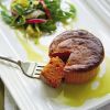 Larson’s classic influence can be seen in his red bell pepper sformato, a Northern Italian molded custard. “The sformato is full of the natural sweetness of the red bell pepper, while fennel seeds and chili flakes add a little bite. I always like to have a complement to the custard, in this case an arugula, anchovy, and breadcrumb salad. Its saltiness and bitterness make a nice foil for the sweet and spicy custard.”