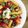 His rigatoni alla nonna, a rustic family pasta dish that he created while cooking at home one night, celebrates his favorite summer vegetables. He cooks eggplant and peppers until their surfaces are caramelized, and even a bit charred. Tomatoes are added as a binder, basil as a nuance of anise.