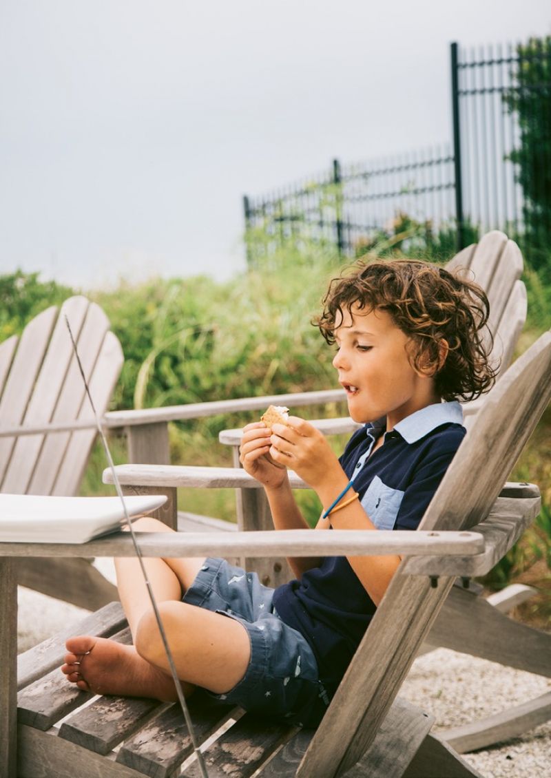 The kids, including son Sante (pictured here) especially love making s’mores.
