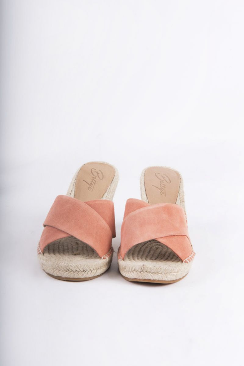 Bettye “Hanna” wedge espadrille slides in coral suede, $49.50 at Belk