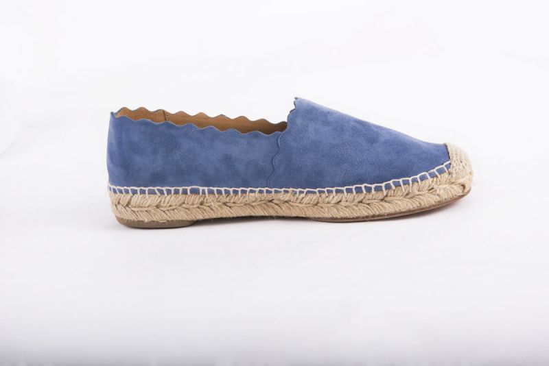 Chloe “Lauren” espadrille flat in blue kidskin suede, $445 at RTW