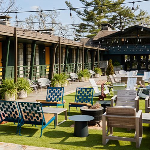 Prairie-Style: Reopened last summer after a major renovation, parts of the Skyline Lodge were designed and built in the 1930s—a student of Frank Lloyd Wright was the original architect. Today, guests relax in the central courtyard where there was once a pool.