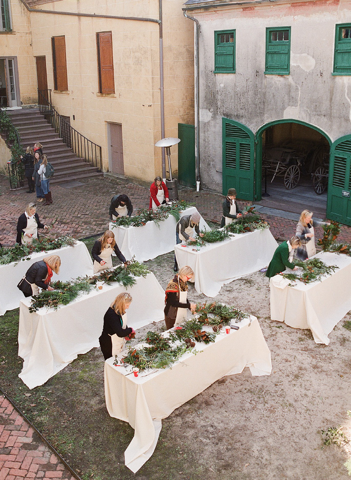 The pals, each tapped to make the grandest of events bloom (both were named among Martha Stewart Weddings’ Top Floral Designers last year), had established the Charleston Flower Workshop in May 2015 as a way to share two perspectives on their art form. That December, they held their first Holiday Wreath Workshop outside the Aiken-Rhett, also taking guests into the circa-1820 residence for garland and mantel arrangement demonstrations.
